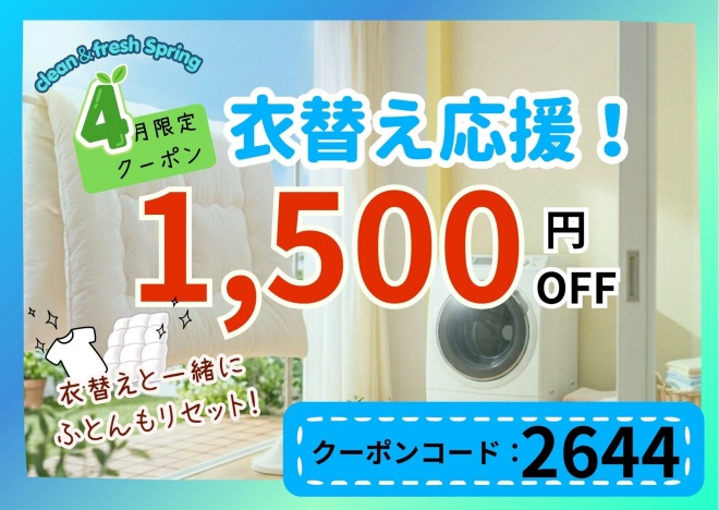 ☘️4月は1,500円OFF「衣替えと一緒にふとんもリセット♪」